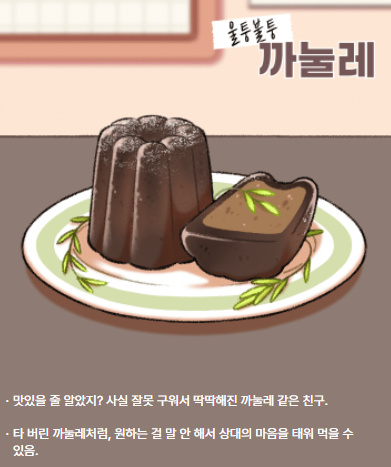 테스트 결과를 음식으로 알려주기 때문에 음식들을 한 번 보고 싶기도 하며 먹고 싶습니다.