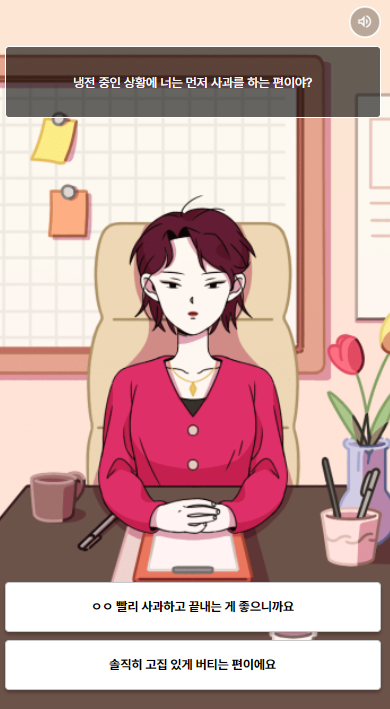 냉전 중인 상황에 너는 먼저 사과를 하는 편인지 물어봅니다.