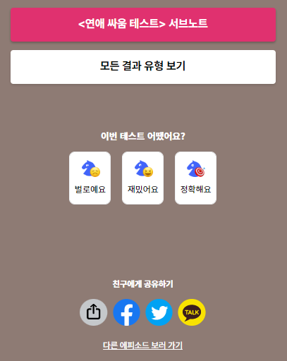 <연애 싸움 테스트> 서브노트를 통해서 더 알아보실 수 있으며, 모든 결과 유형을 보실 수 있습니다.