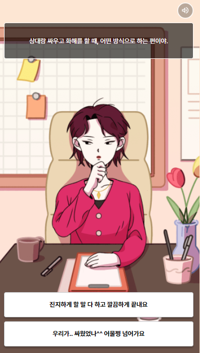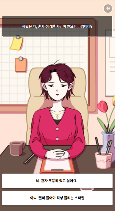 싸웠을 때, 혼자 정리할 시간이 필요한 타입인지 물어봅니다.