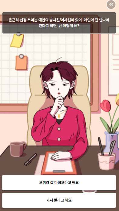 연애 1타 몬쌤의 연애 종합반에서의 연애 싸움 테스트를 한 번 시작해 보겠습니다.