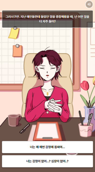 지난 애인들한테 들었던 말을 종합해봤을 때, 넌 어떤 말을 더 자주 듣는지 물어보며,
