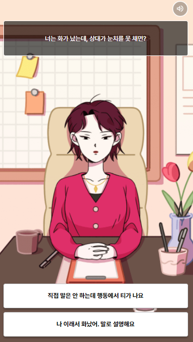 너는 화가 났는데, 상대가 눈치를 못 채면 어떻게 할 것인지 물어봅니다.