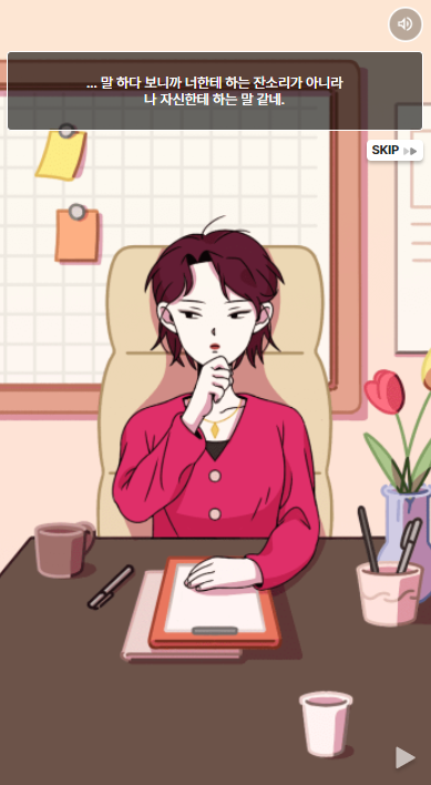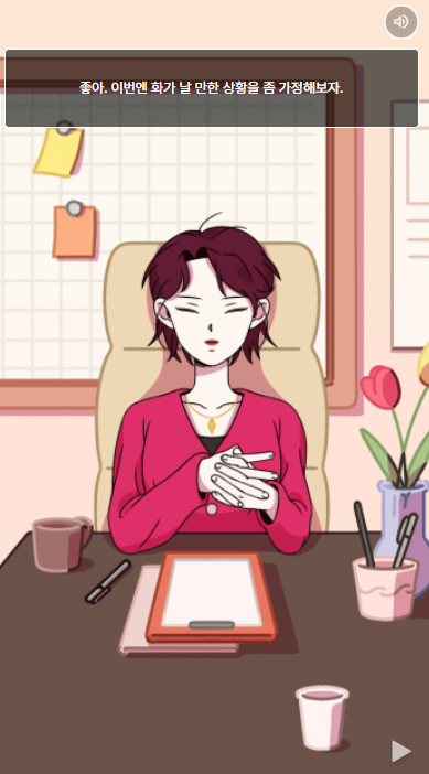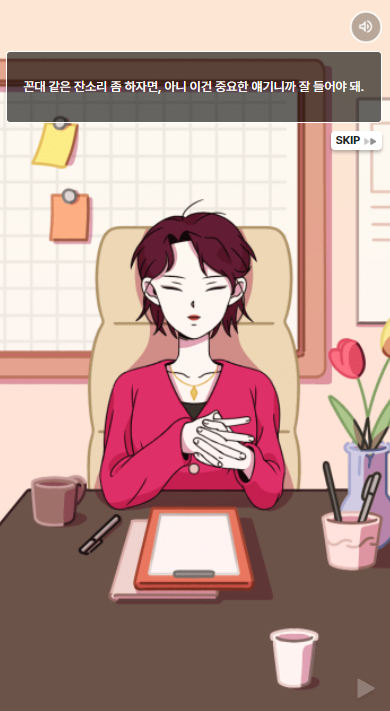 오른쪽 하단에 삼각형 표시를 누르시면 상황극으로 넘어갈 것 같네요.