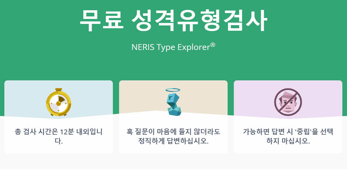 MBTI 성격 테스트를 실시하시는데 실제로 걸리는 시간은 오래 걸리지 않으므로 부담을 가지실 필요가 없습니다.