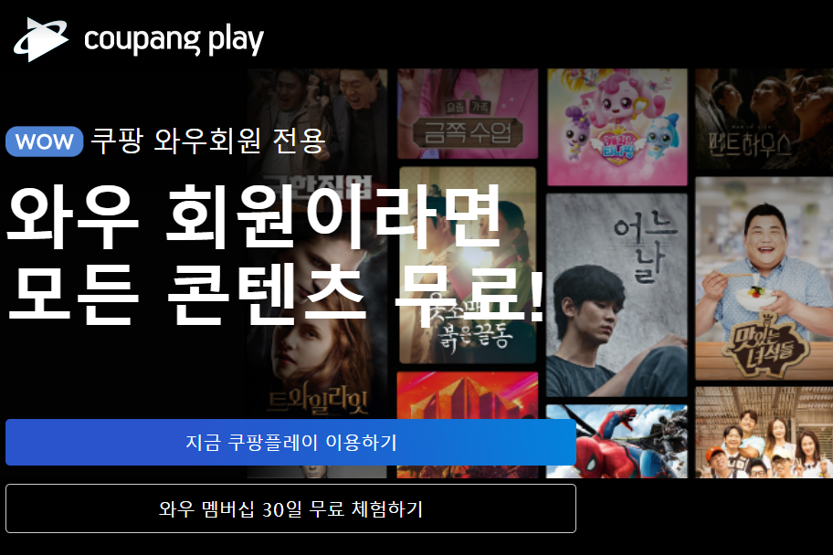 쿠팡 로켓 와우 멤버십을 가입하면 쿠팡 플레이를 무료로 이용하실 수 있는 장점이 있습니다.