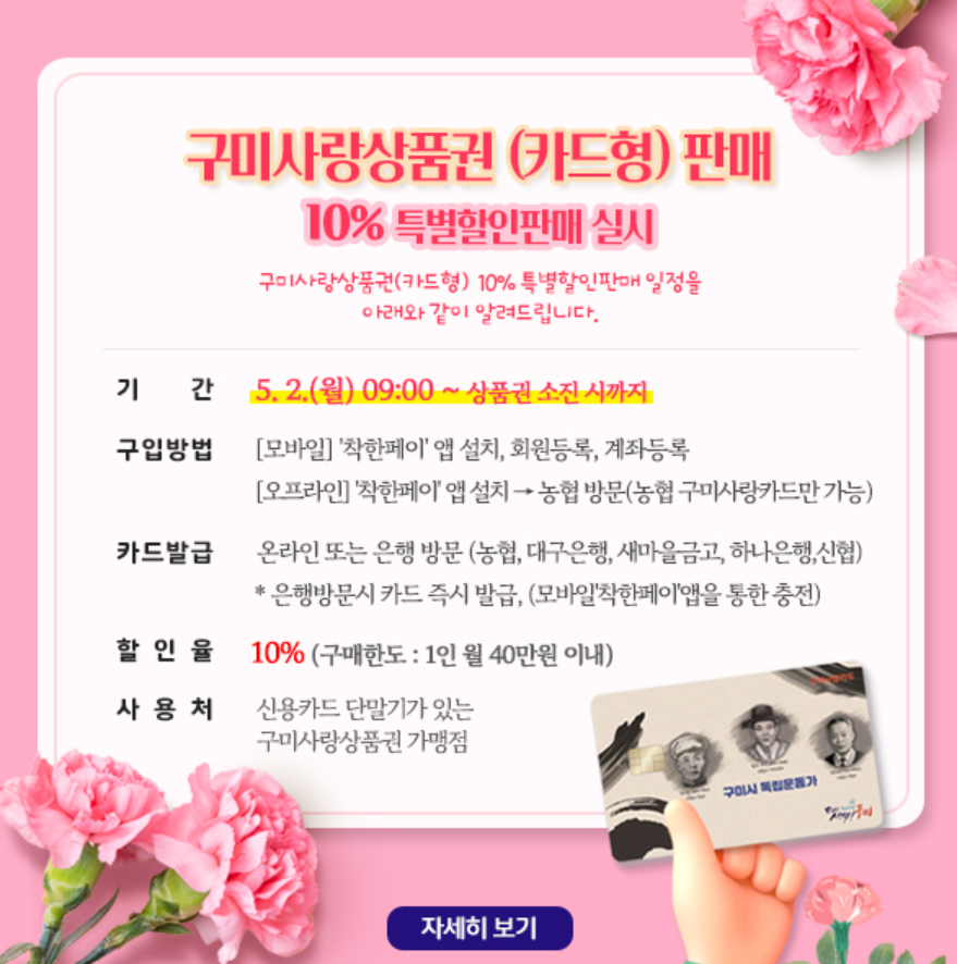 이상 구미사랑상품권 10% 특별 할인 판매 소식에 대해서 알아보았습니다.