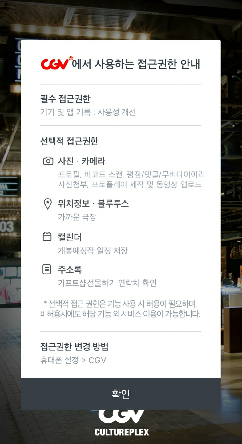 → CGV 스토어(영화관람권 예매 및 팝콘, 음료 및 스낵) 바로가기