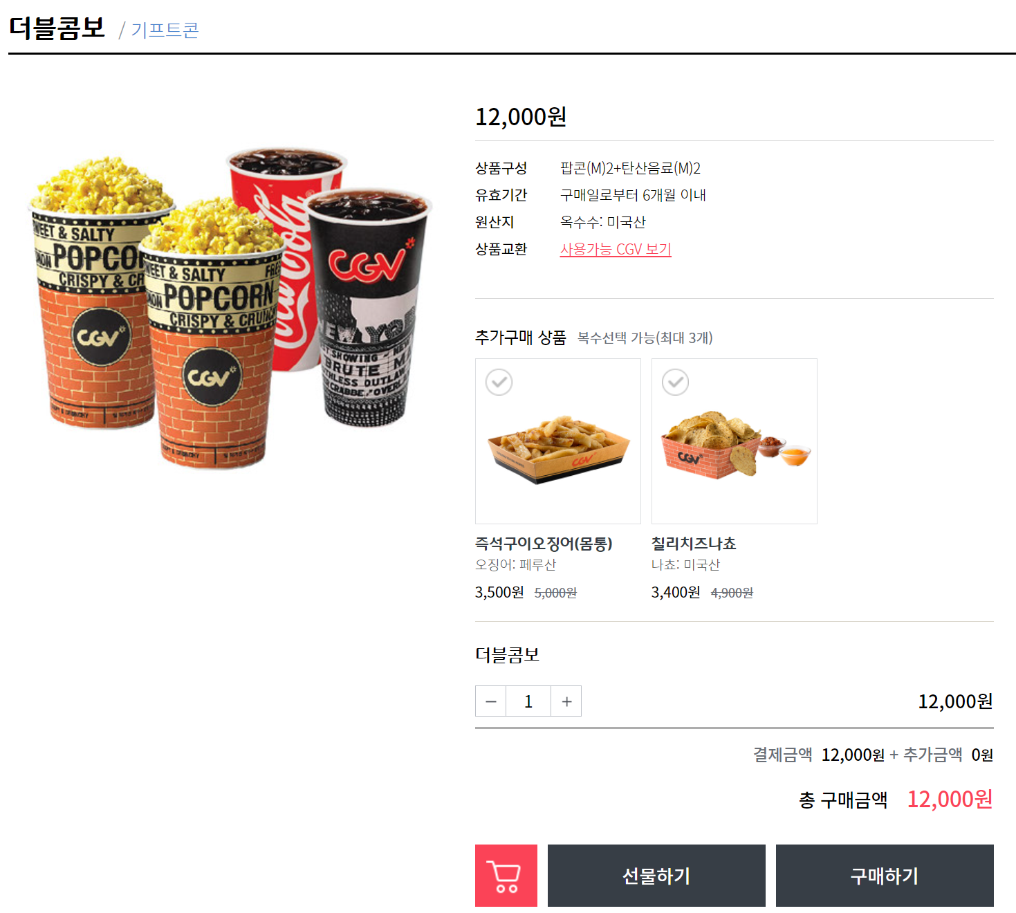 먼저, CGV 팝콘의 콤보 메뉴부터 알아보도록 하겠습니다.