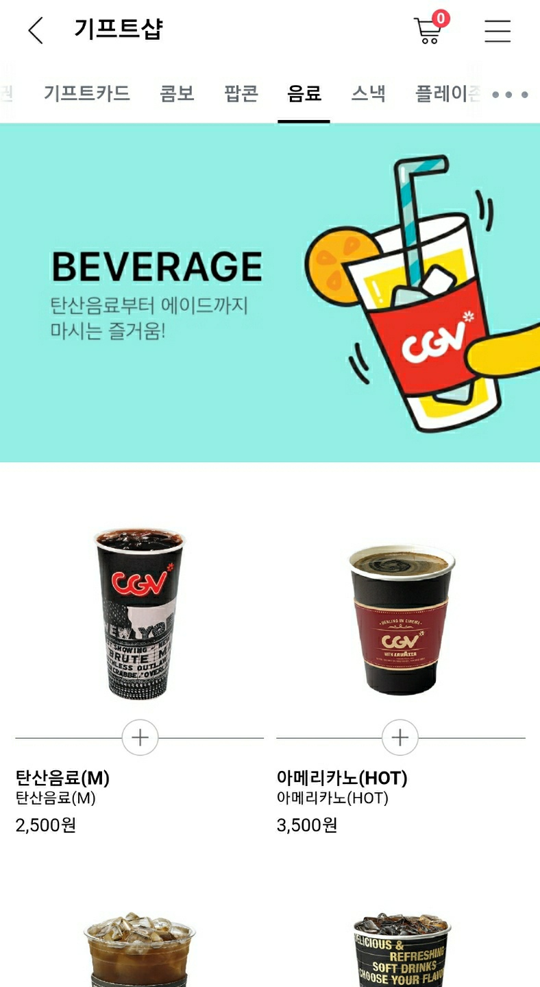 CGV 어플을 통해서 간편하게 팝콘 메뉴와 음료를 알아보실 수 있습니다.
