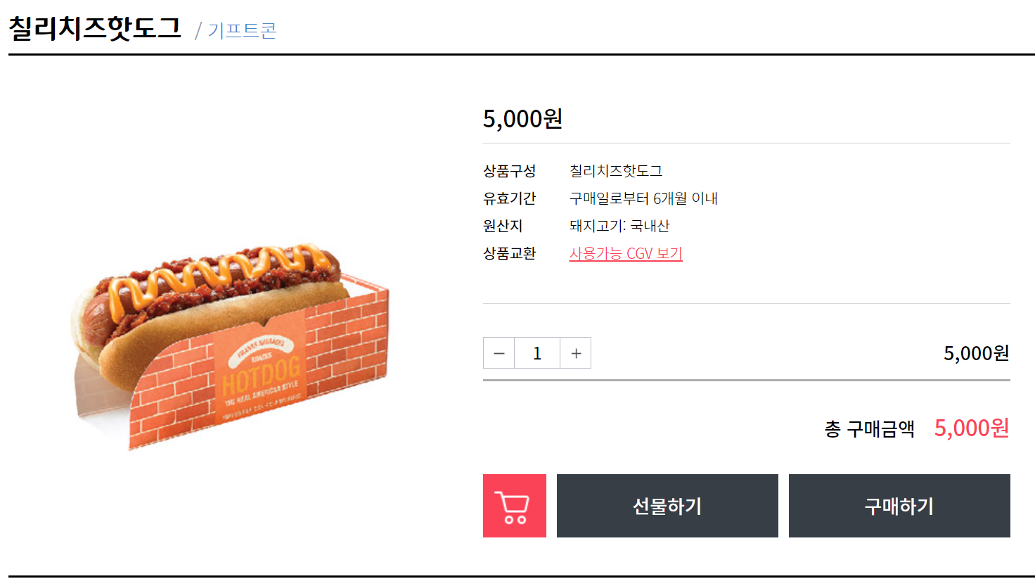 5. 칠리치즈핫도그 - 가격은 5,000원입니다.