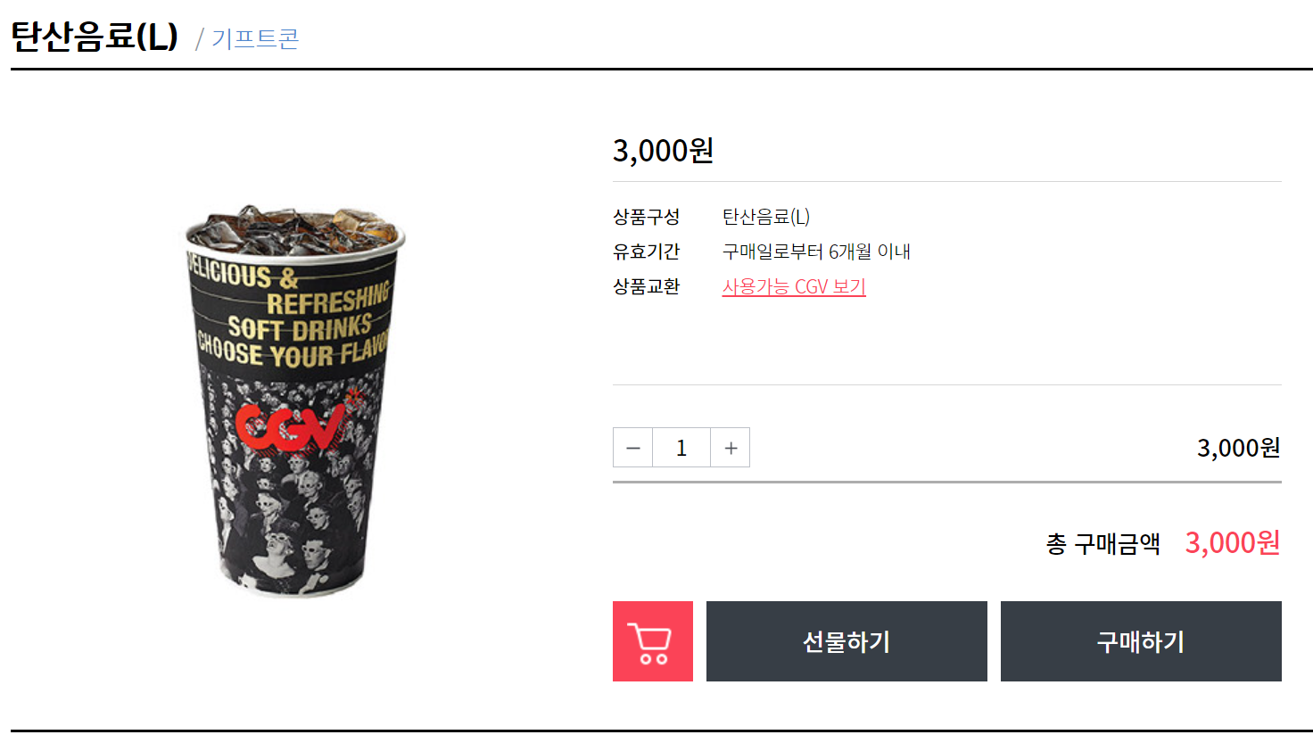 위의 CGV 팝콘 메뉴와 음료, 스낵의 가격은 동일합니다.