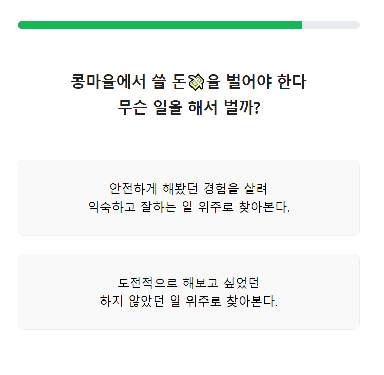 10번. 콩마을에서 쓸 돈을 벌어야한다. 무슨 일을 해서 벌까?