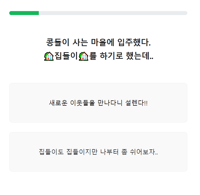 2번. 콩들이 사는 마을에 입주했다. 집들이를 하기로 했는데 이럴때 나는?