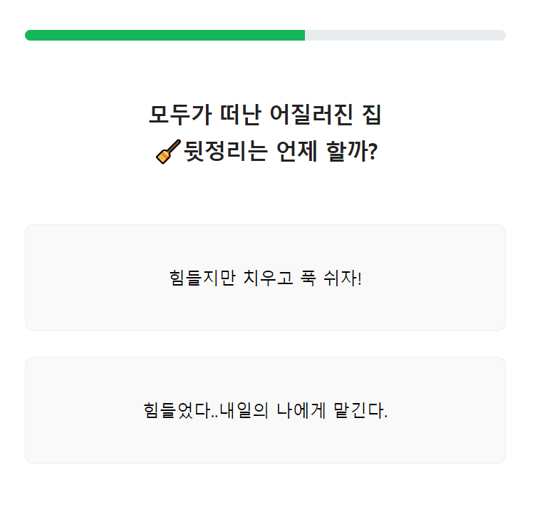 7번. 모두가 떠난 어질러진 집에서 뒷정리는 언제 할까?