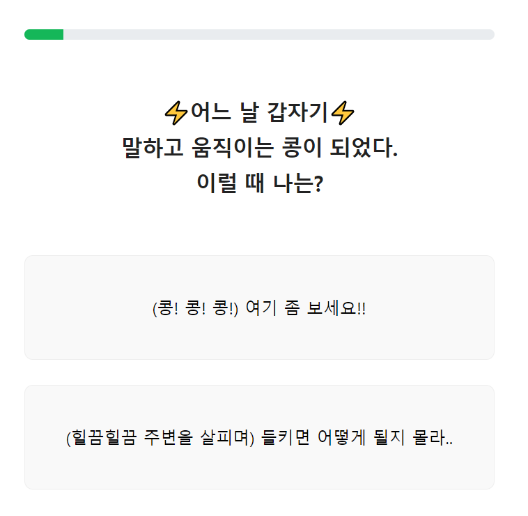 1번. 어느 날 갑자기 말하고 움직이는 콩이 되었다. 이럴 때 나는?