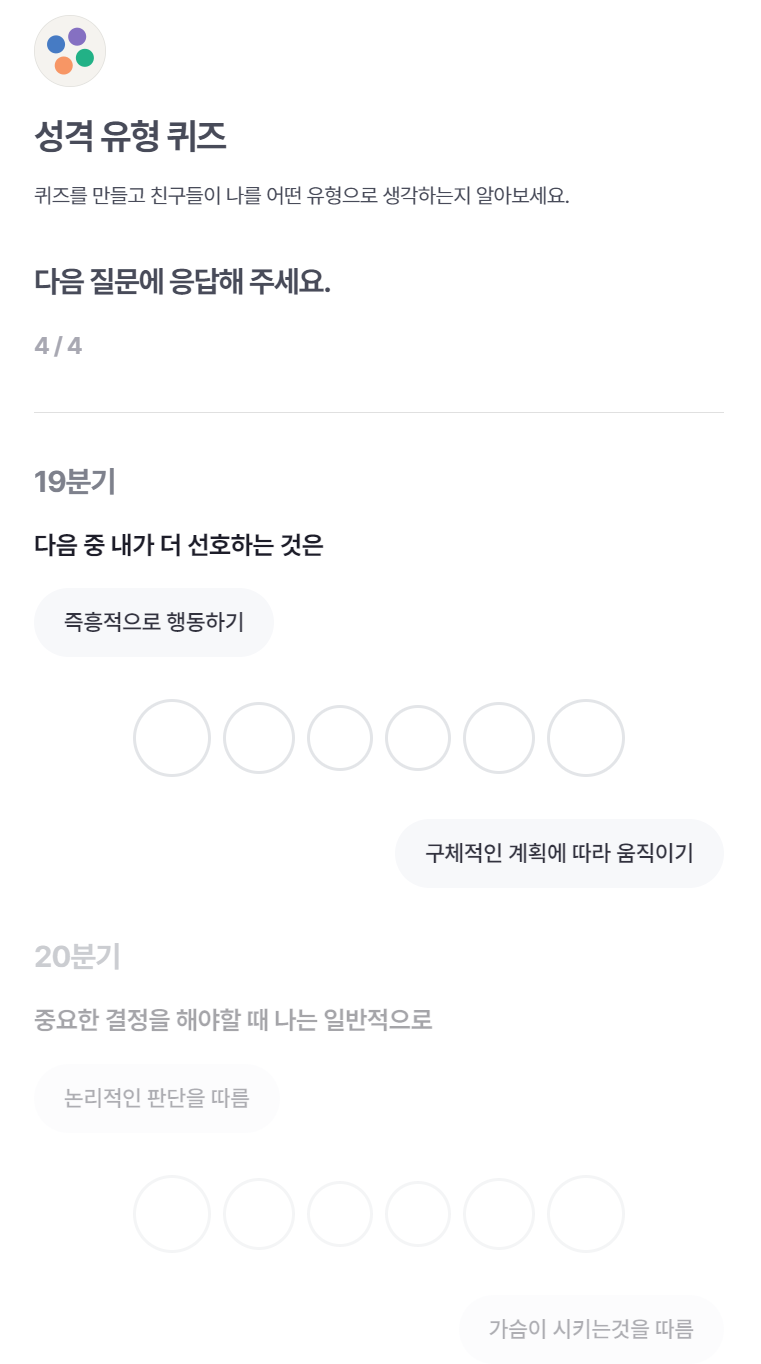 잠시만 기다려 주시면 성격 유형 퀴즈 결과가 나옵니다.