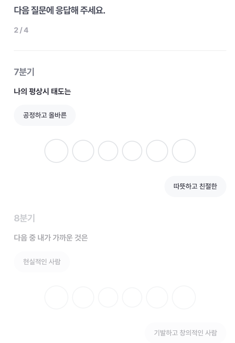 7분기의 문항은 나의 평상시 태도는? / 8분기의 문항은 다음 중 내가 가까운 것은?