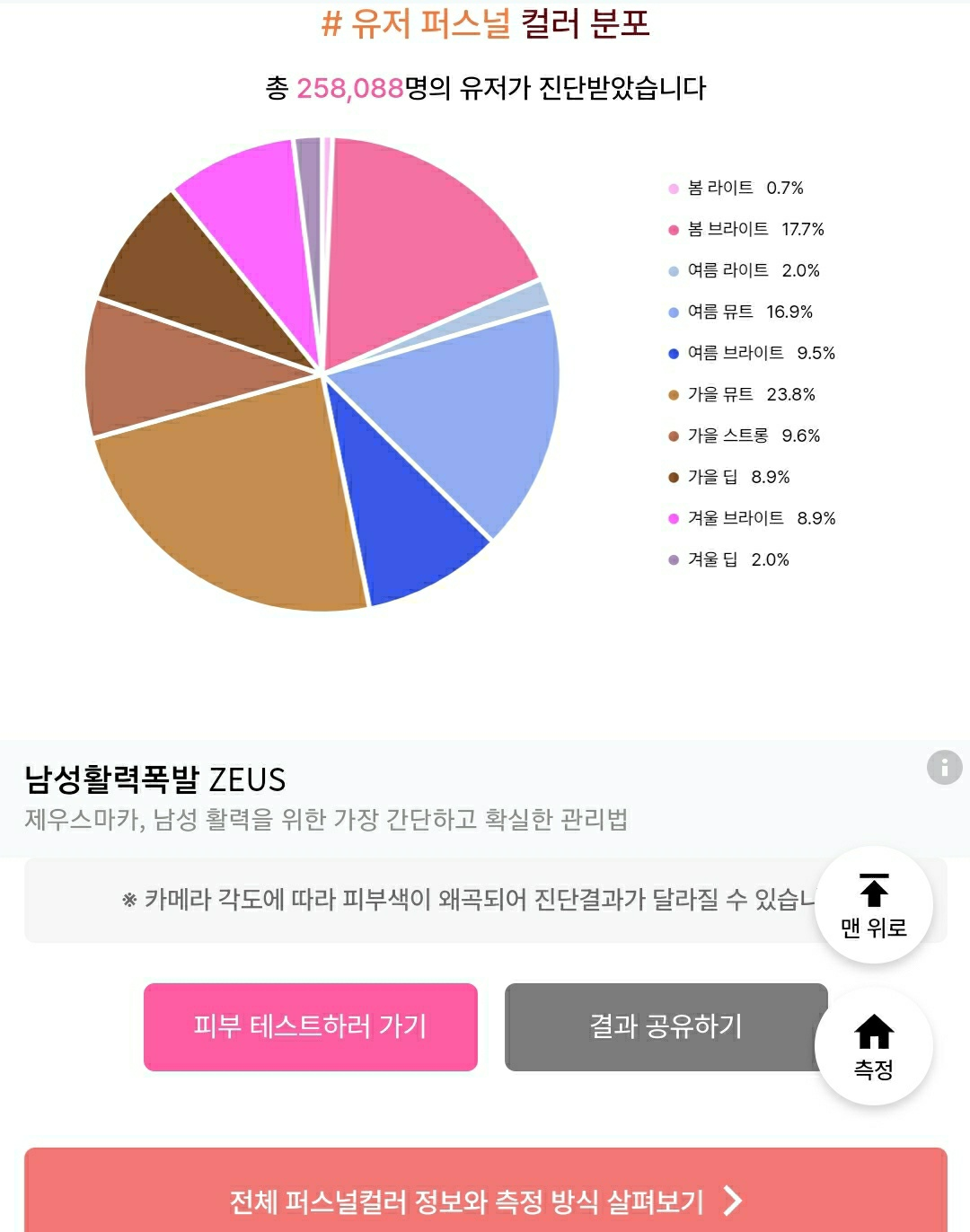 퍼스널 컬러 진단은 총 25만명의 유저가 진단을 받았다고 합니다.