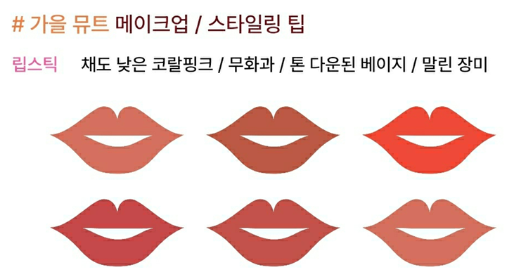 퍼스널 컬러 가을 뮤트의 메이크업 및 스타일링 팁까지 나옵니다.