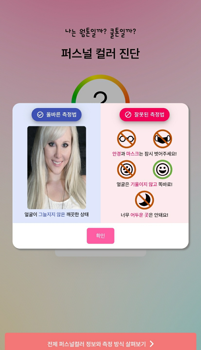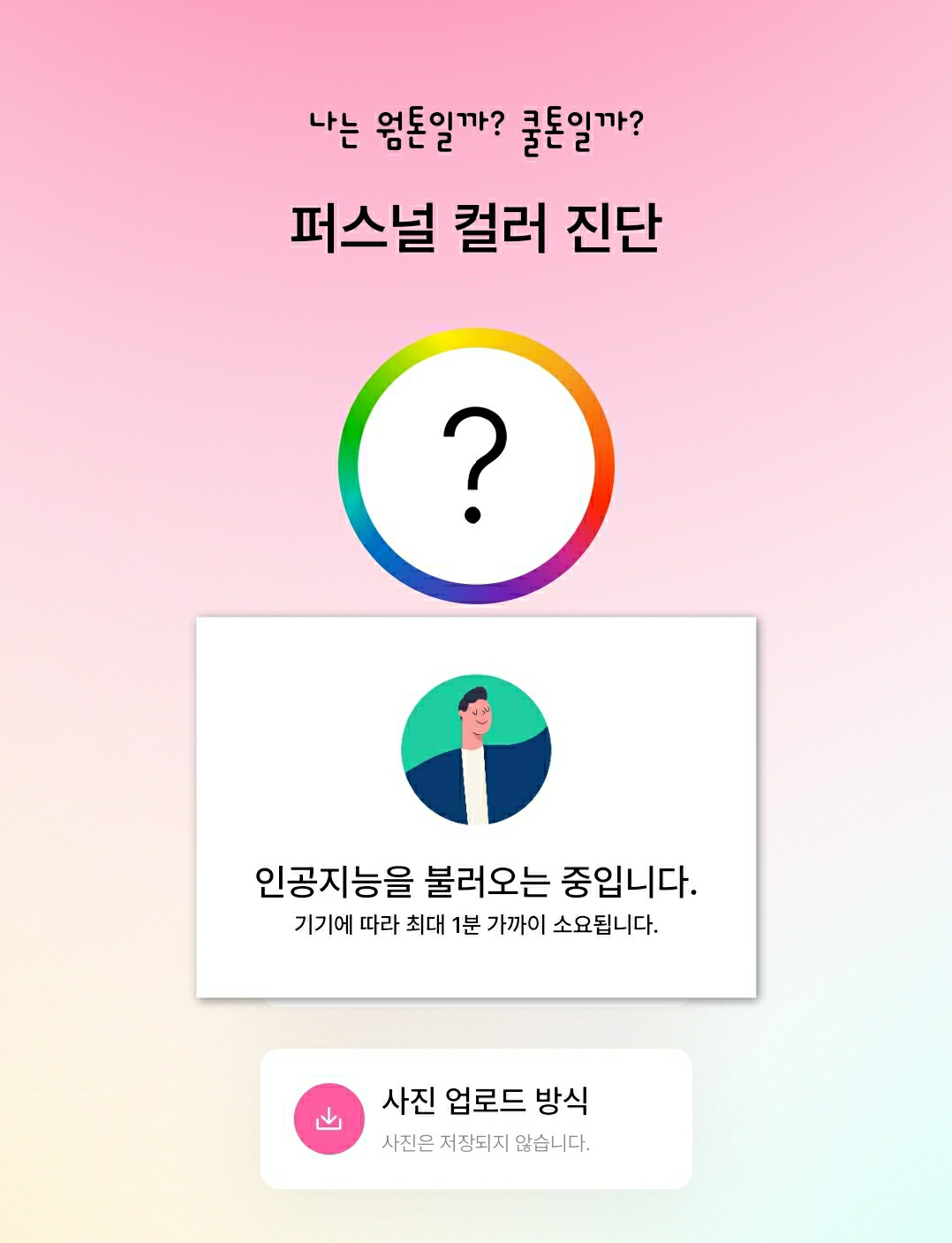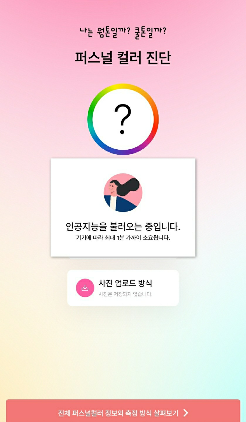퍼스널 컬러 진단의 인공지능을 불러오는 중입니다. 라는 창이 나옵니다.