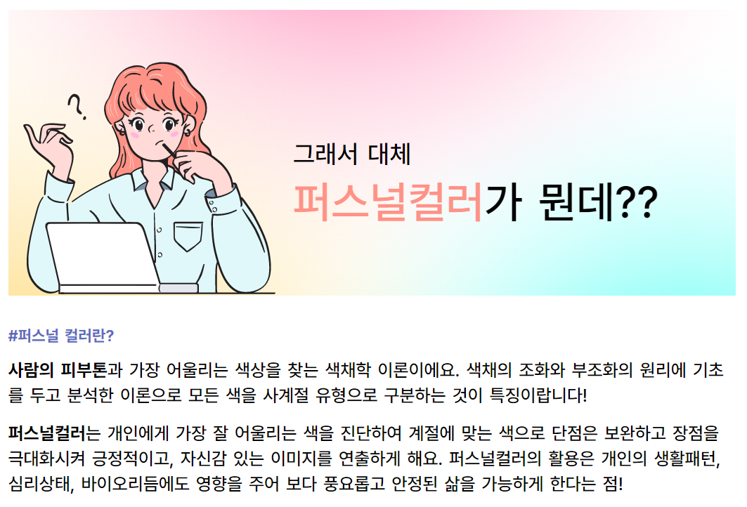 ↑ ↑ ↑ 위의 링크나 버튼을 통해서 퍼스널 컬러 진단을 시작하실 수 있습니다.