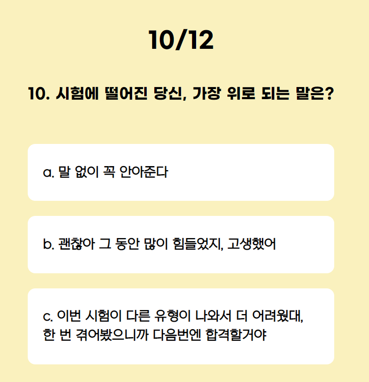 10. 시험에 떨어진 당신, 가장 위로 되는 말은?