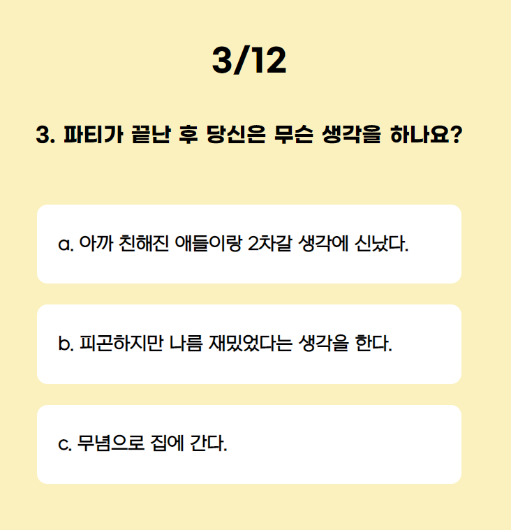 3. 파티가 끝난 후 당신은 무슨 생각을 하나요?