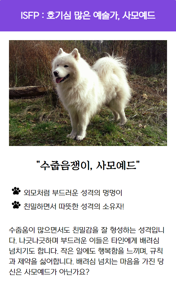 ↑ ↑ ↑ 위의 링크나 버튼을 통해서 강아지 테스트 MBTI를 시작하실 수 있습니다.