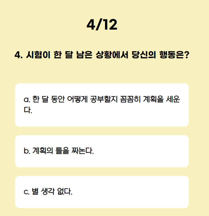 4. 시험이 한 달 남은 상황에서 당신의 행동은?