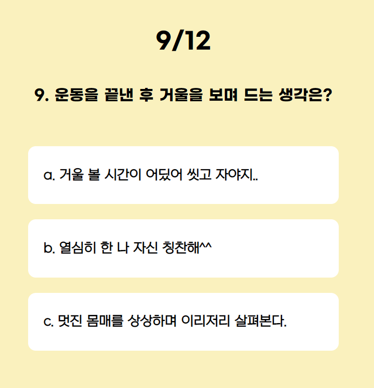 9. 운동을 끝낸 후 거울을 보며 드는 생각은?