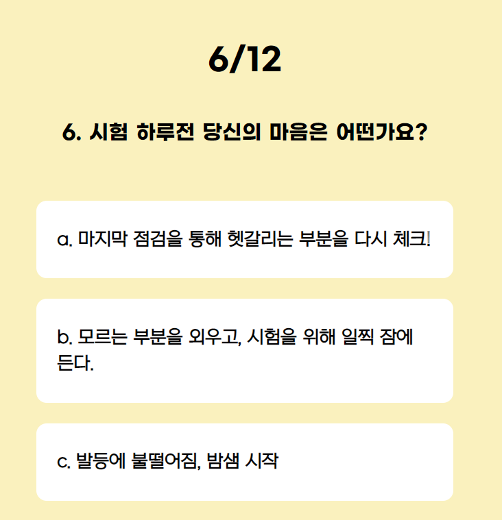 6. 시험 하루 전 당신의 마음은 어떤가요?