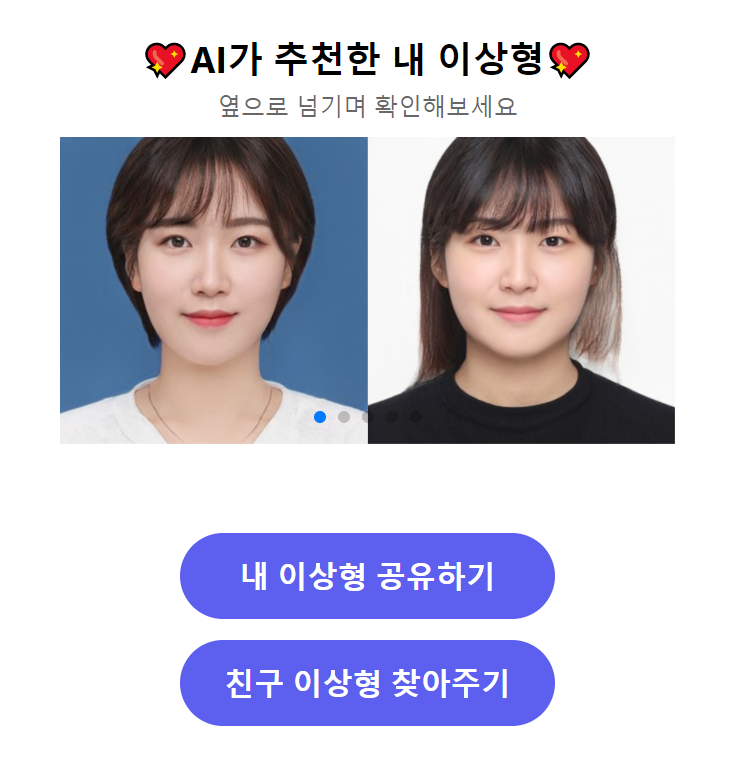 내 이상형 공유하기와 친구 이상형 찾아주기도 가능합니다.