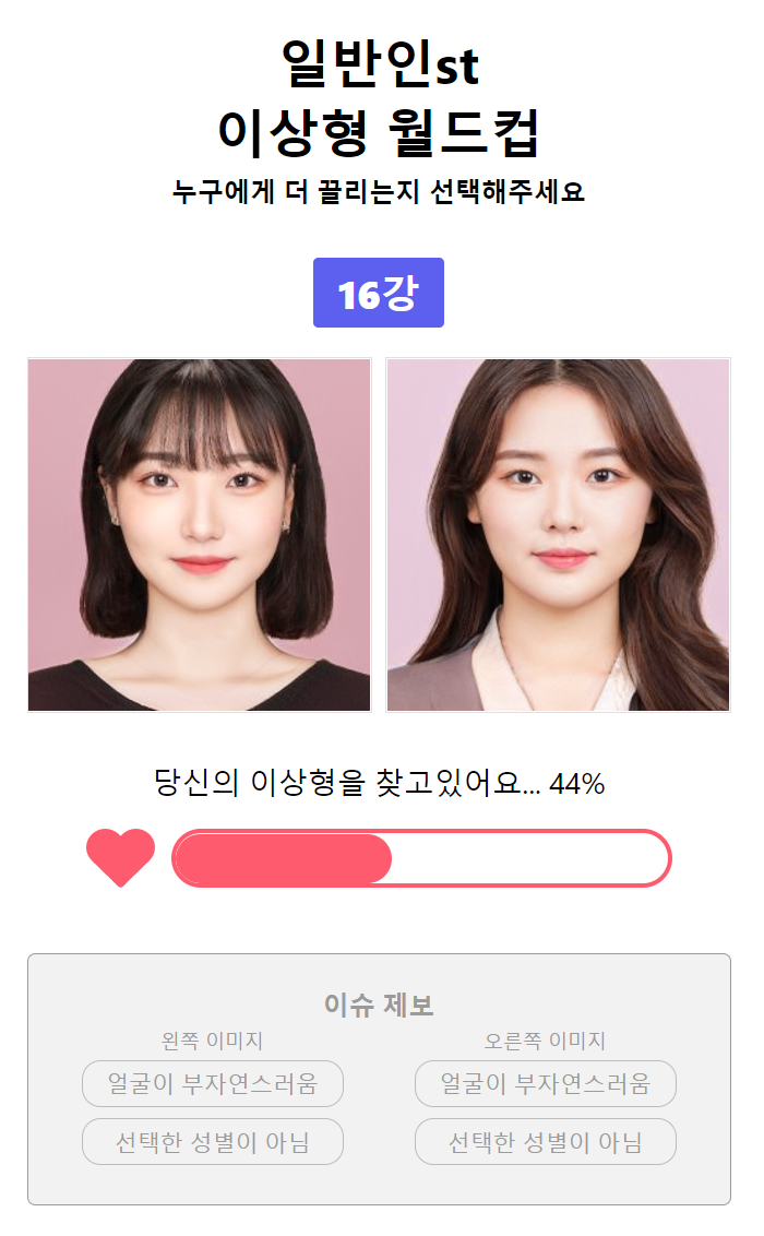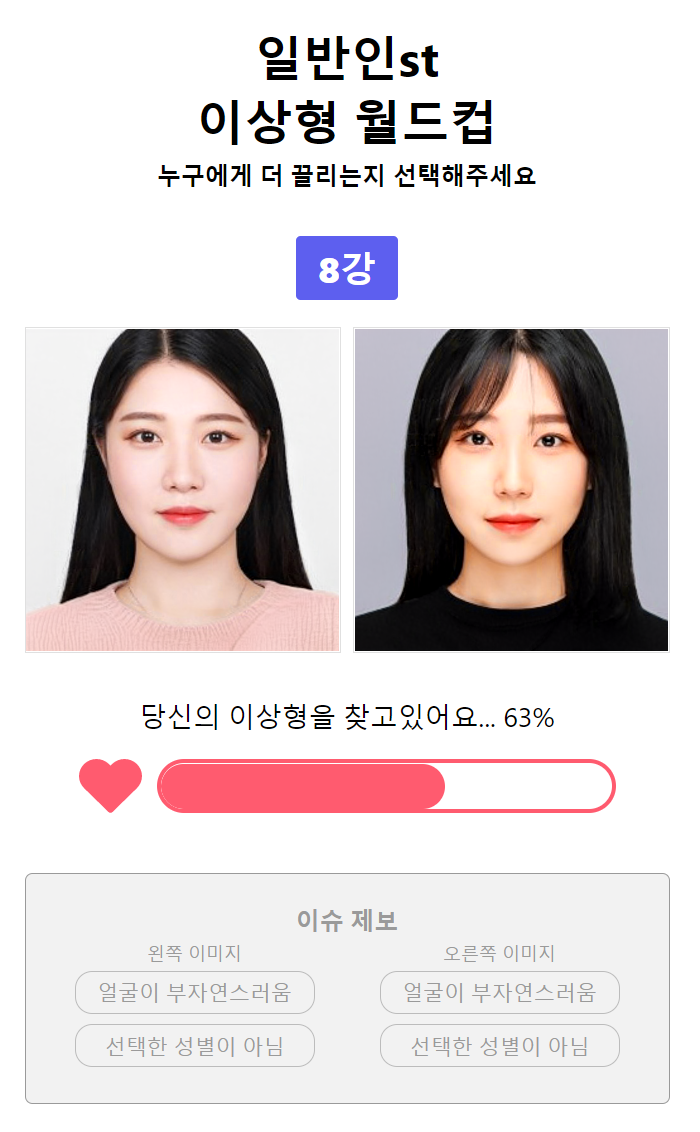 심심하실 때에 재미 삼아 일반인st 이상형 월드컵을 통해서 자신의 이상형을 찾아보셔도 됩니다.