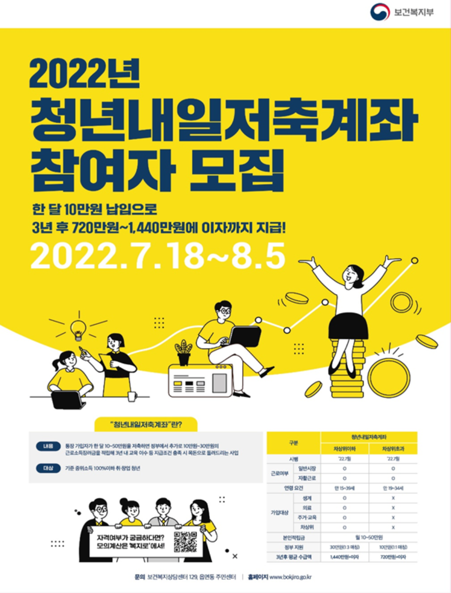2022년 청년내일저축계좌에 대한 내용은 아래를 참고해주시며, 2022 청년저축계좌 신청 및 신청방법, 조건 등에 대해서 알아보도록 하겠습니다.