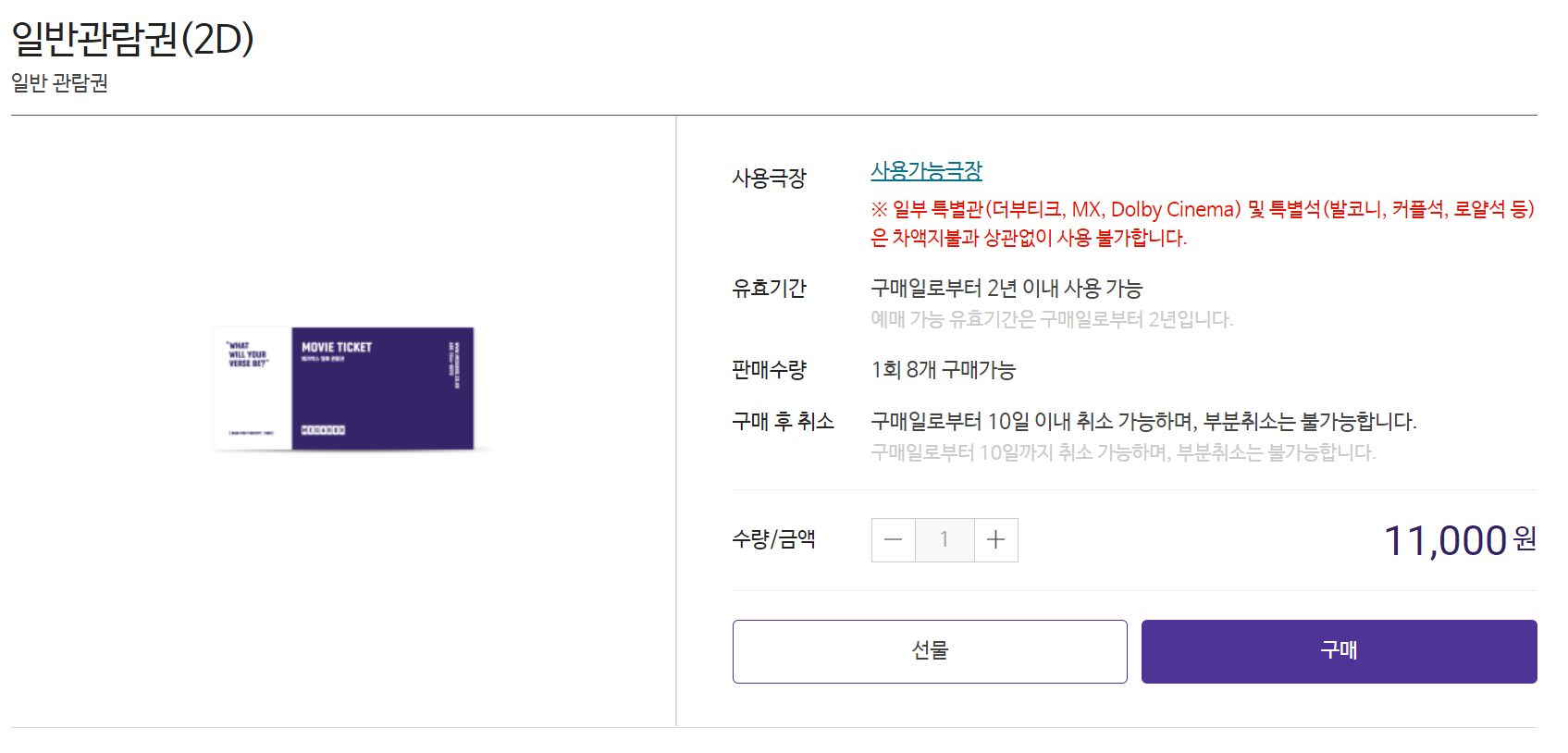 메가박스 영화 관람권 2D 가격에 대해서 알아보겠습니다.