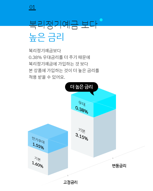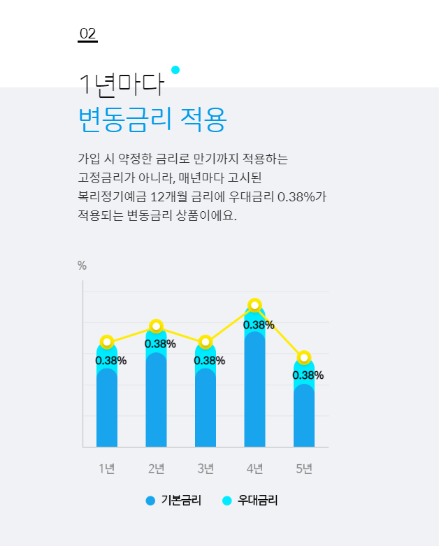 변동금리이기 때문에 기준금리가 더 올라간다면 이자 혜택을 추가로 얻을 수 있다는 점이 있습니다.