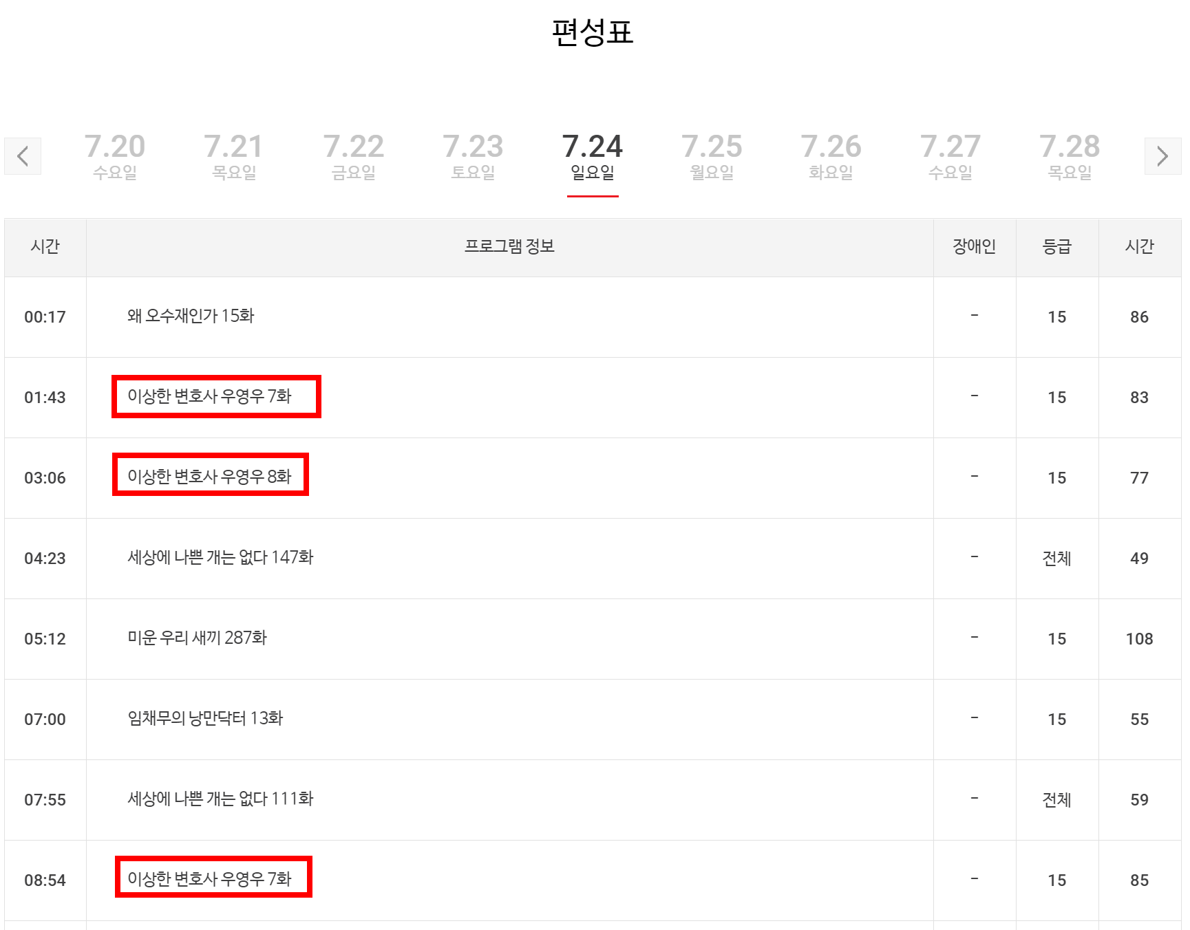 위의 ENA 편성표 및 채널번호를 확인하여 이상한 변호사 우영우 드라마를 무료로 시청하시길 바랍니다.
