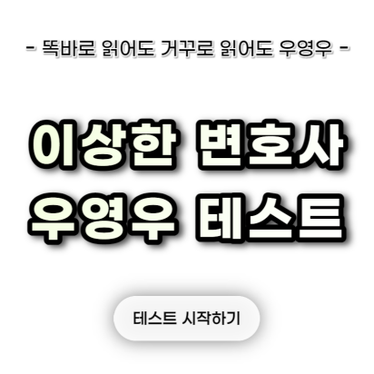 ↑ ↑ ↑ 위의 링크나 버튼을 통해서 이상한 변호사 우영우 테스트를 시작하실 수 있습니다.