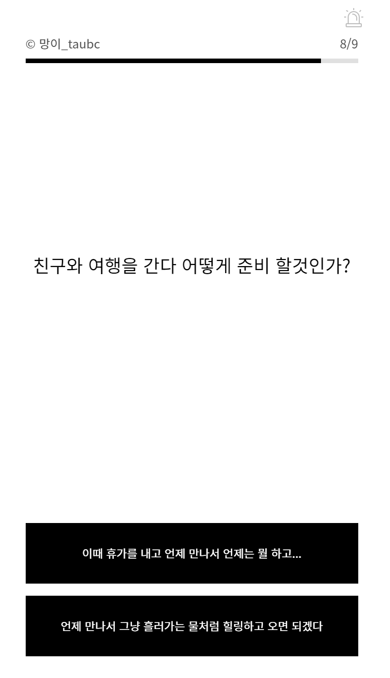 총 9문제를 다 체크하셨다면 우영우 테스트 결과를 알아보실 수 있습니다.