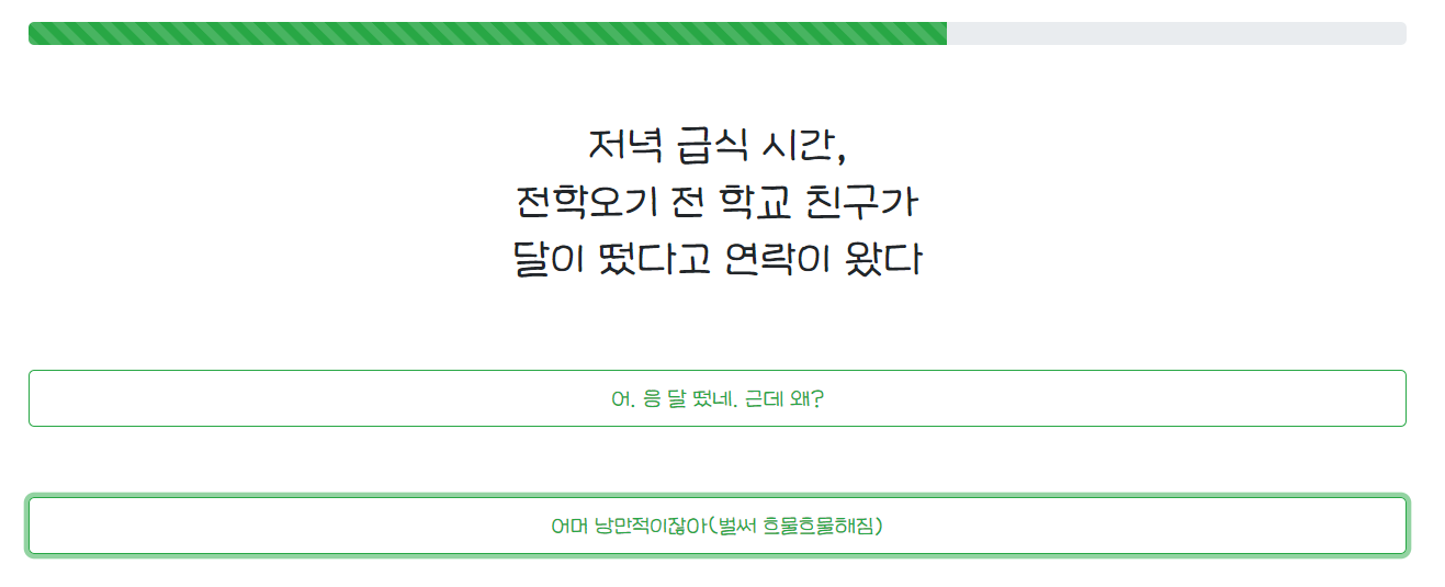 8. 저녁 급식 시간, 전학오기 전 학교 친구가 달이 떴다고 연락이 왔다.