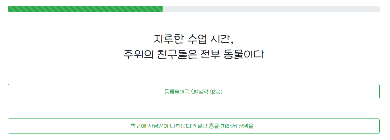 MBTI 성격 유형과 같이 심리테스트를 좋아하는 분들에게는 '동물학교 MBTI 테스트'를 재미 삼아 테스트를 해보셔도 됩니다.