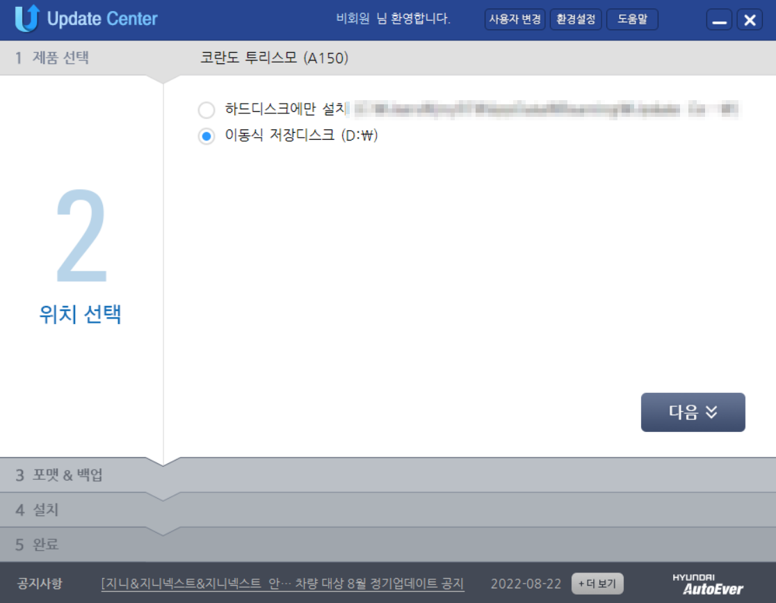 ① 현대오토에버 사이트에서 회원가입을 하지 않고 업데이트 센터(Update Center)를 설치해주시면 됩니다.