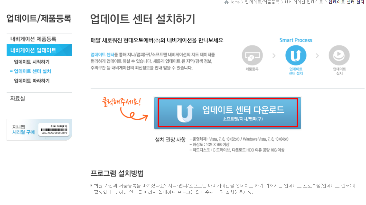 Update Center 프로그램 설치는 '업데이트 센터 다운로드'를 클릭하여 설치를 진행하시면 됩니다.