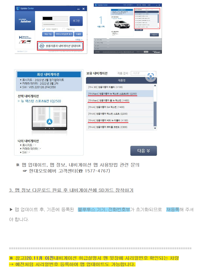 쌍용자동차 지니맵 네비게이션 업데이트 준비물