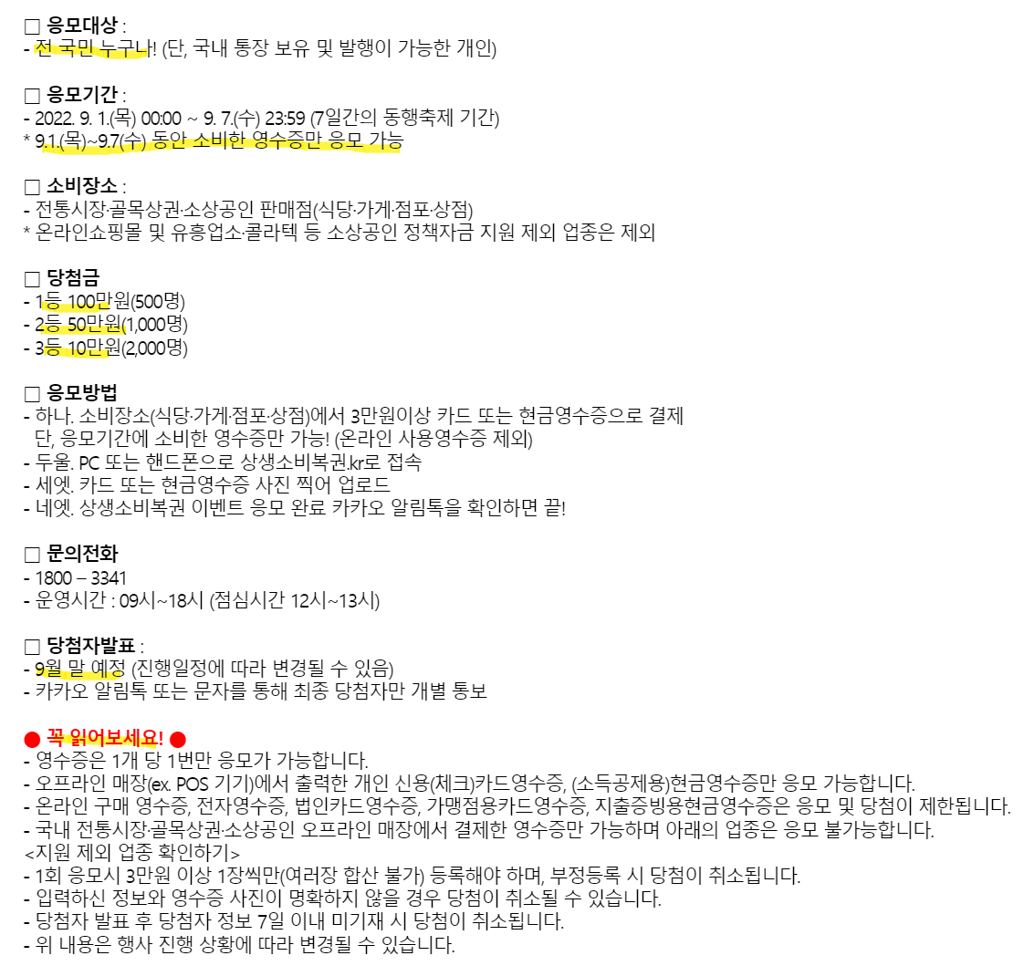 상생소비복권kr 신청 및 이벤트 응모, 응모기간 (영수증만 있으면 누구나 참여 가능)