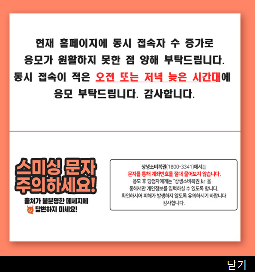 상생소비복권kr 신청 및 이벤트 응모는 다음과 같습니다.