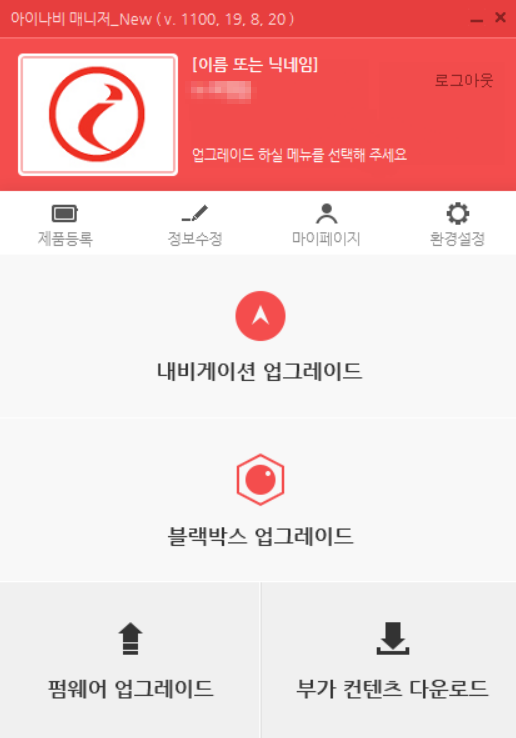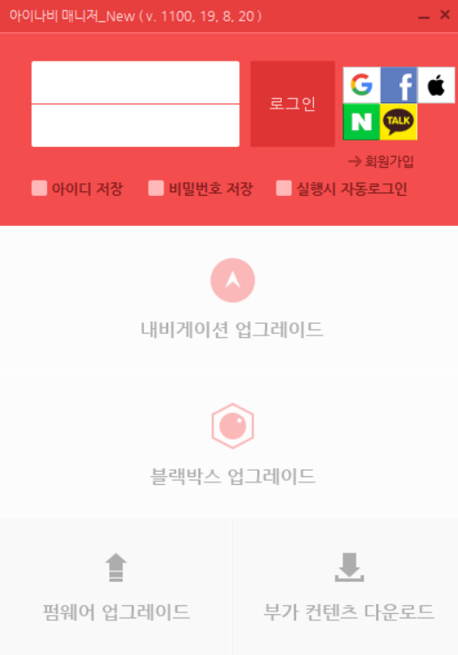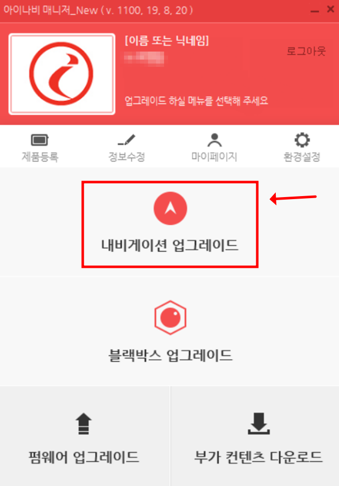 아이나비 매니저 프로그램을 실행하고 로그인을 해주셔야 아이나비 내비게이션 업그레이드가 진행하실 수 있습니다.