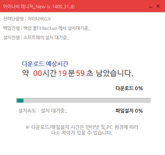 아이나비 매니저를 설치하고 있으며, 잠시만 기다려주시면 아이나비 매니저 프로그램 설치가 완료될 것입니다.