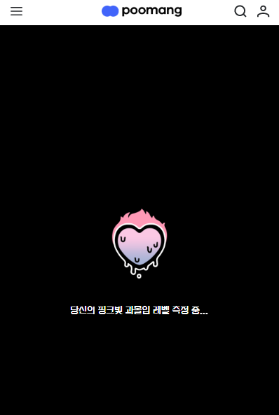 12번 문제까지 다 체크 하셨다면 '당신의 핑크빛 과몰입 레벨 측정 중...'이라는 창이 나옵니다.